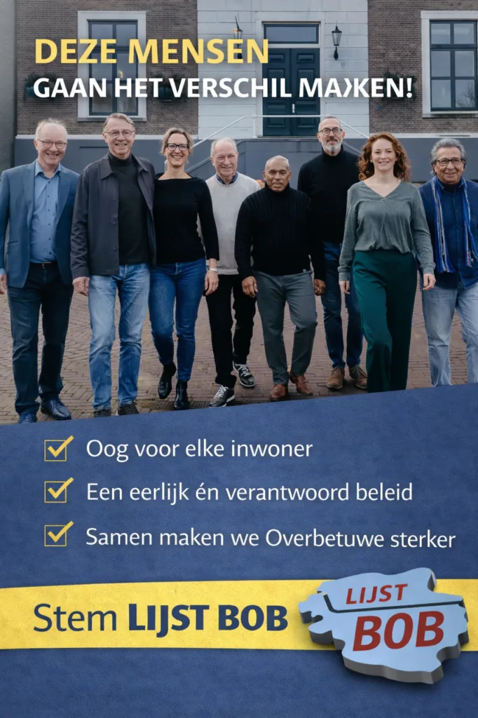 Onze kandidaten wonen en werken hier. Ze kennen de dorpen, de verenigingen, de bedrijven en de mensen. Bij ons gaat het niet om posities, maar om oplossingen voor inwoners. Wij kiezen voor wat goed is voor Overbetuwe.